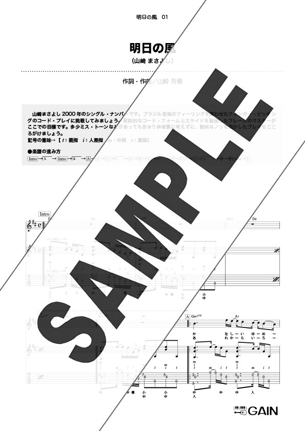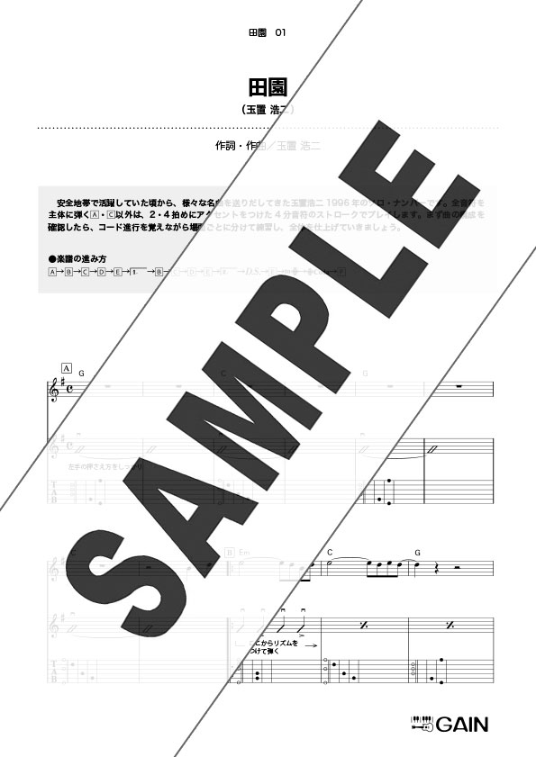 | 山崎まさよしのポップな作品。変則的なコード・フォームとスライドを含むスリー・フィンガー・ピッキングが満載の、弾き応えのある内容です。 | ||