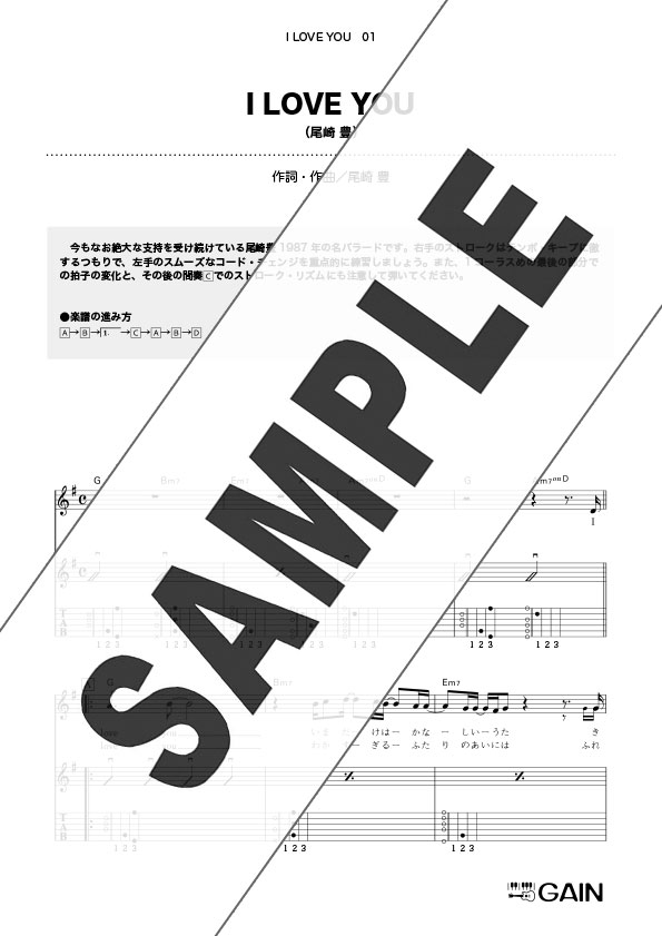 | 尾崎豊の人気バラードのひとつ。ゆっくりしたテンポに乗せてフィンガー・ピッキングでのアルペジオで演奏します。 | ||