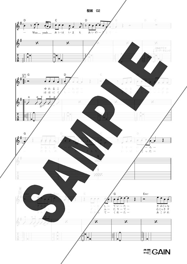 | Mr. Children初期の大ヒット曲。やや遅めのテンポでの、16分音符を含むコード・ストロークが演奏ポイントになります。Capo=2f | ||