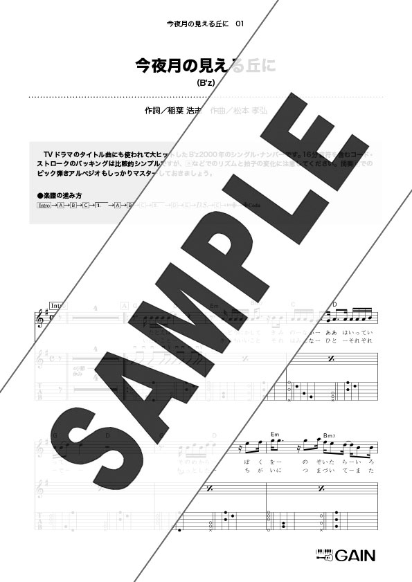 | B'z2000年のヒット・シングル。16分音符を含むコード・ストロークで演奏します。時々変化するリズムや拍子がアクセントとなる曲。 | ||