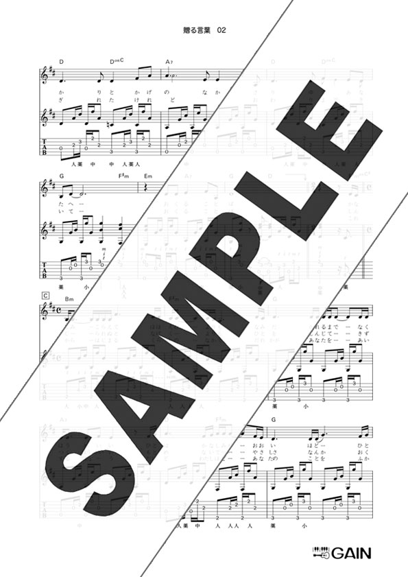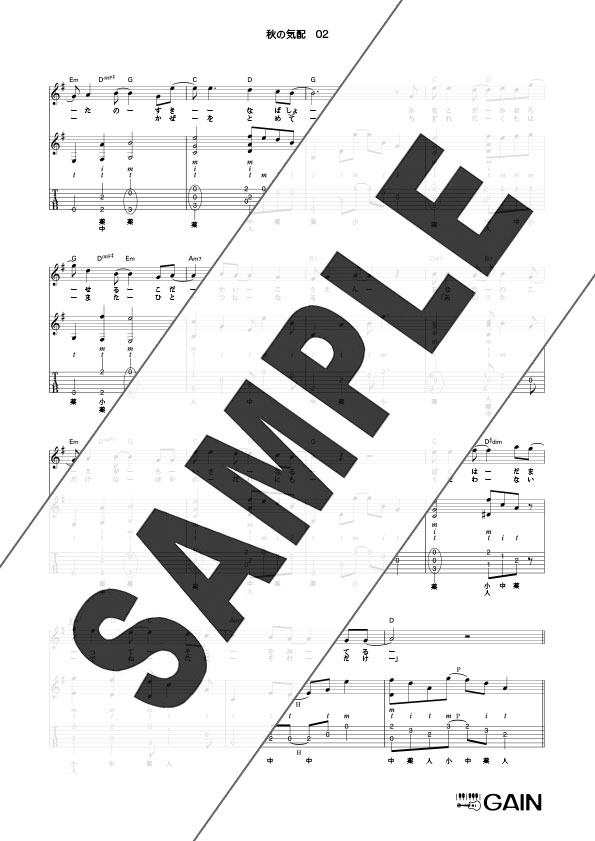 | Le Coupleの代表曲。当時TVドラマの挿入曲として使用されヒットしました。2拍め・4拍めを2音にする8ビートのアルペジオで演奏します。Capo=1f | ||