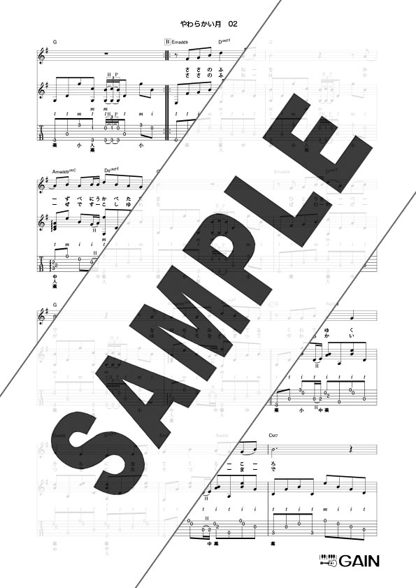 | 山崎まさよしの代表作。パターン化していない自由な音使いも多く、ハーモニクス、ハンマリング&プリングを含む、弾き応えたっぷりの演奏内容です。Capo=2f | ||