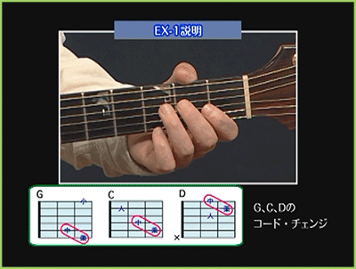 DVDではカリキュラムのテクニックを中心に取り上げます。コードの押さえ方や指使い、ピックの使い方などを目で見て確認できるので、テキストだけではわかりにくい部分も理解しやすくなります。