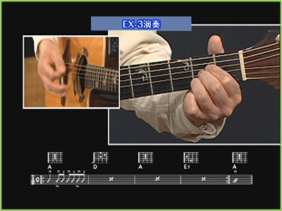 付属DVDでは、テキストに書かれた内容を視覚的に見ることができ、より理解を深めることができます。ここで覚えたテクニックは、CDでの基本練習や応用曲の練習にいかすことができます。