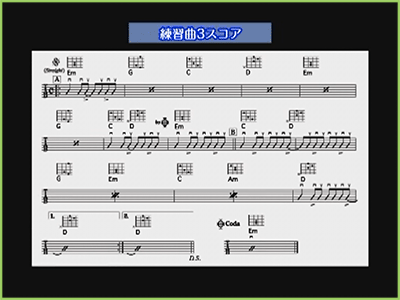 練習曲はギター演奏のシーンのほか、楽譜の表示を見ながら練習もできます。