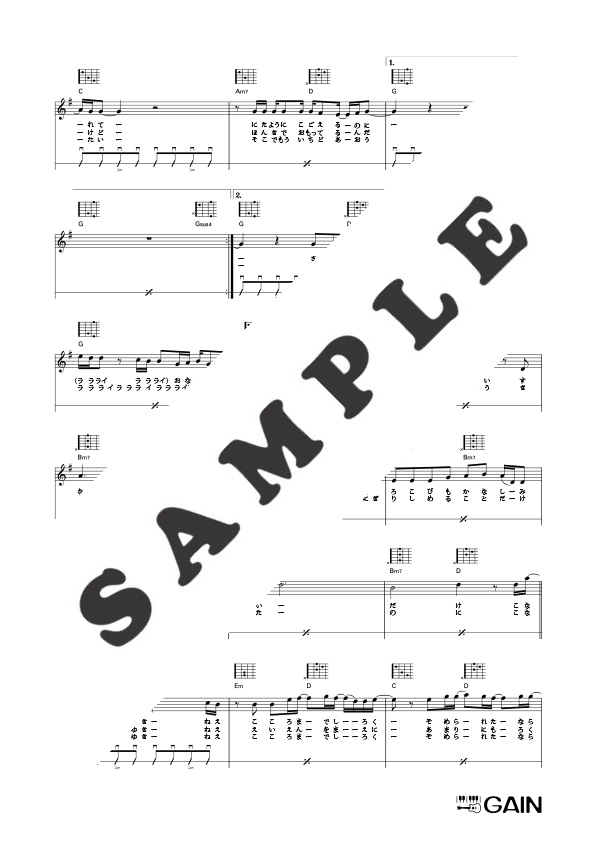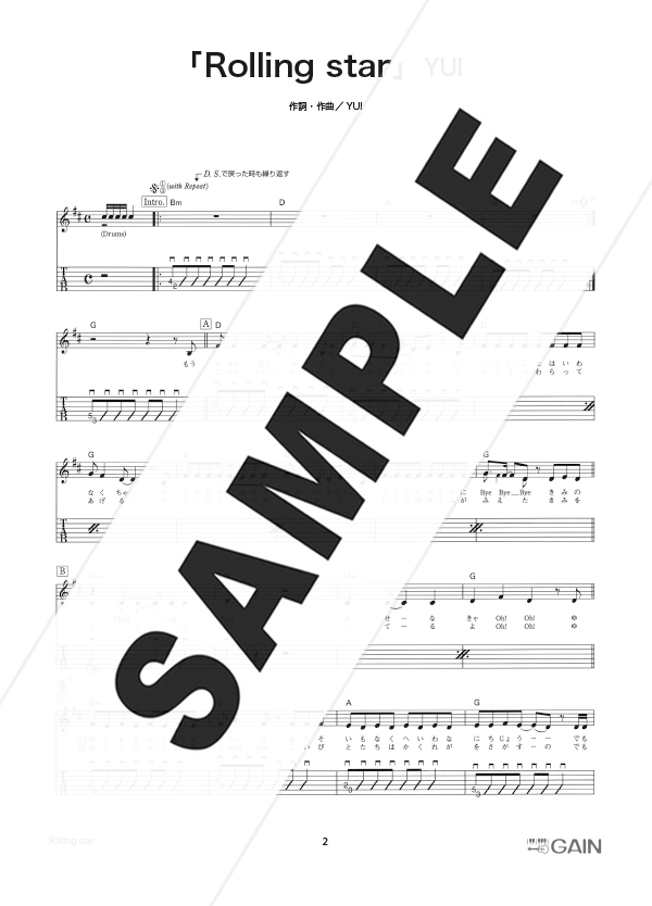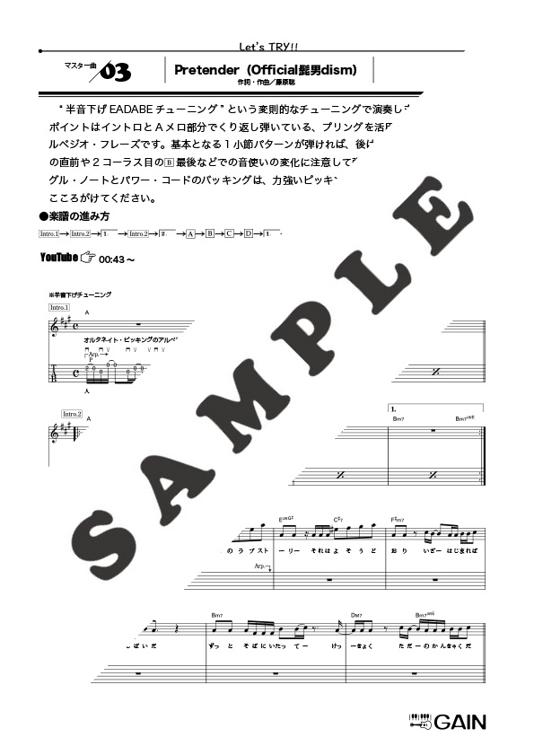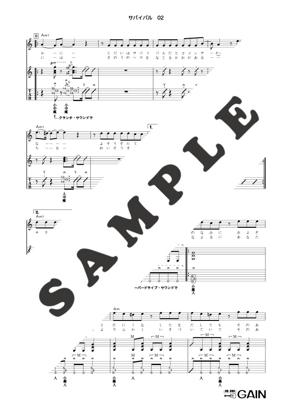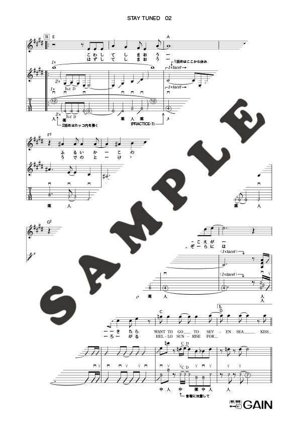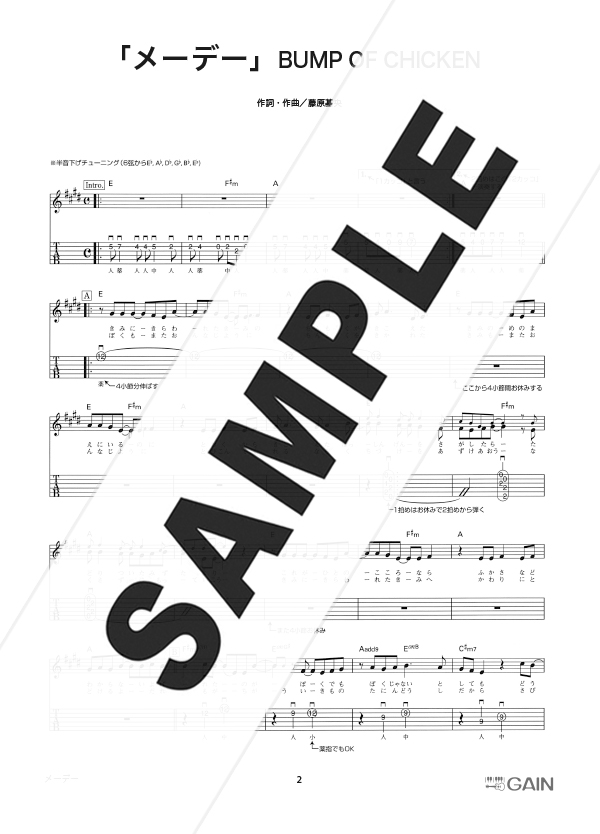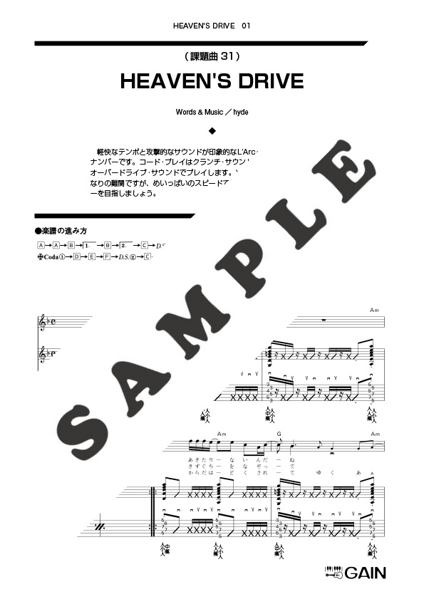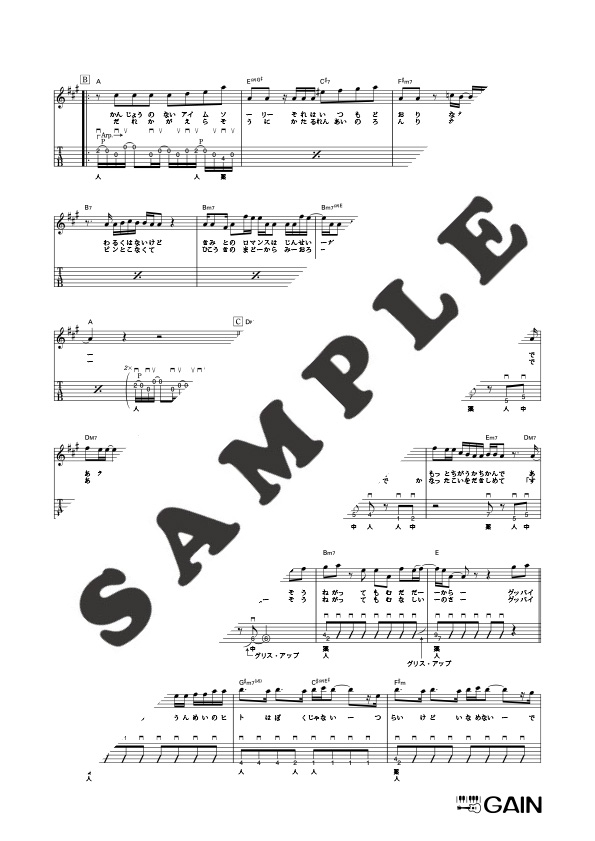| ギター1本のコードストローク・バッキングで弾き語りが超盛り上がる曲。イントロのディレイを使ったリードプレイの解説もついている。演奏+解説動画はYouTubeにて公開中です | ||