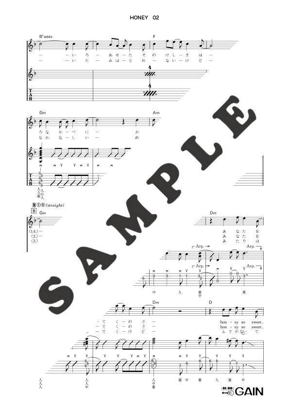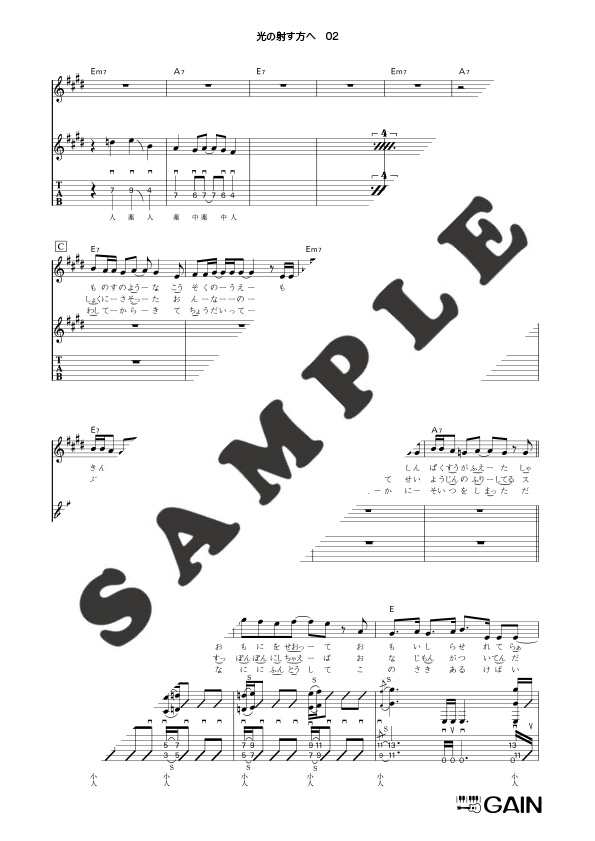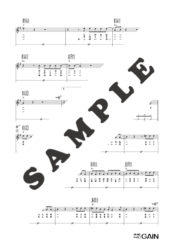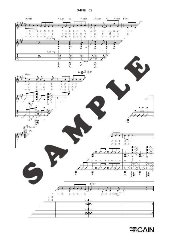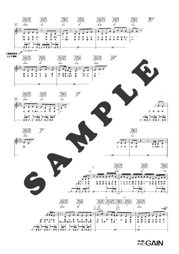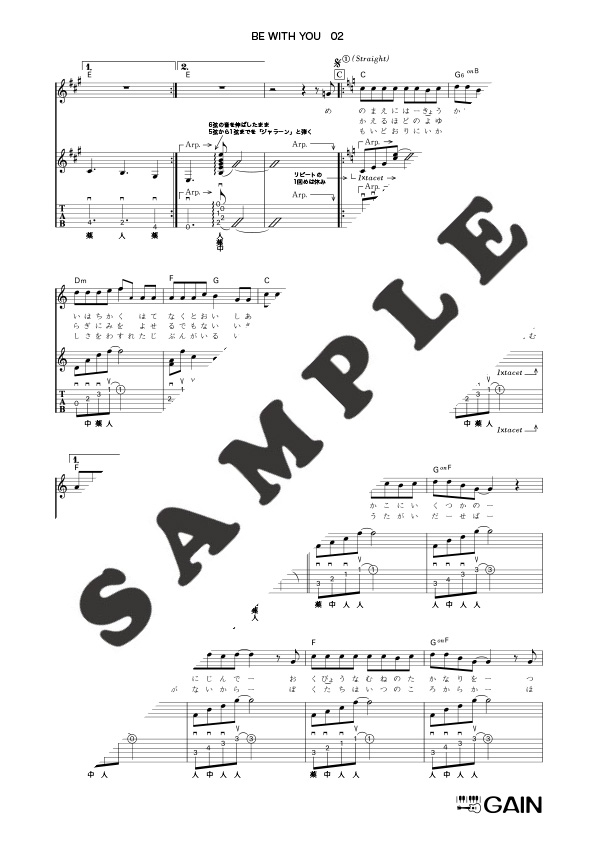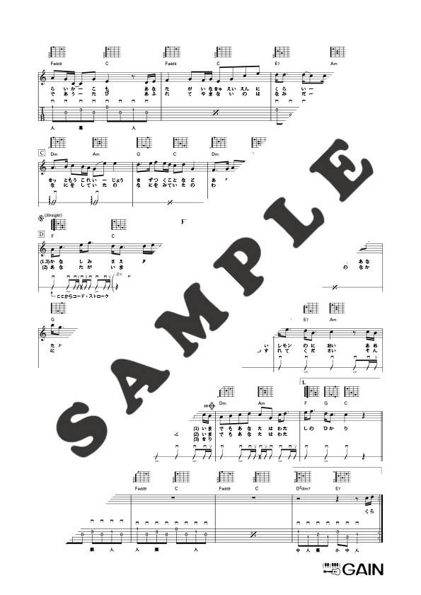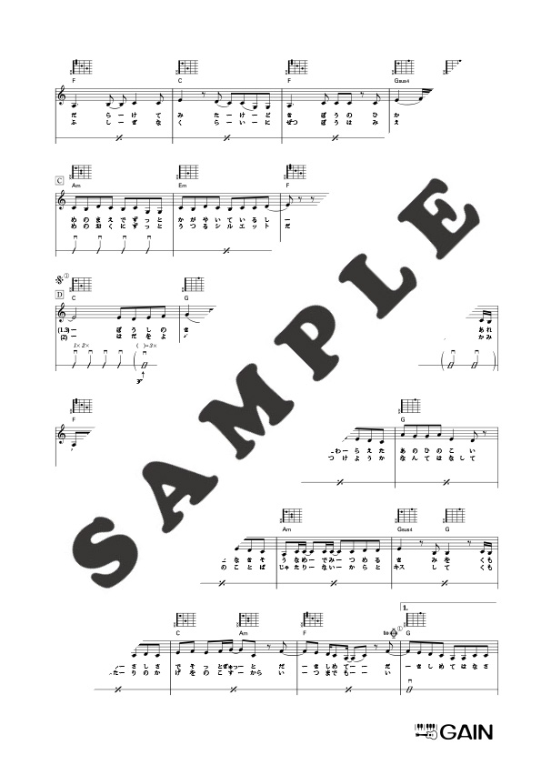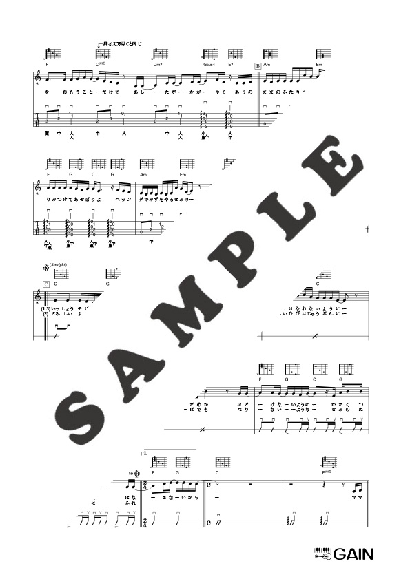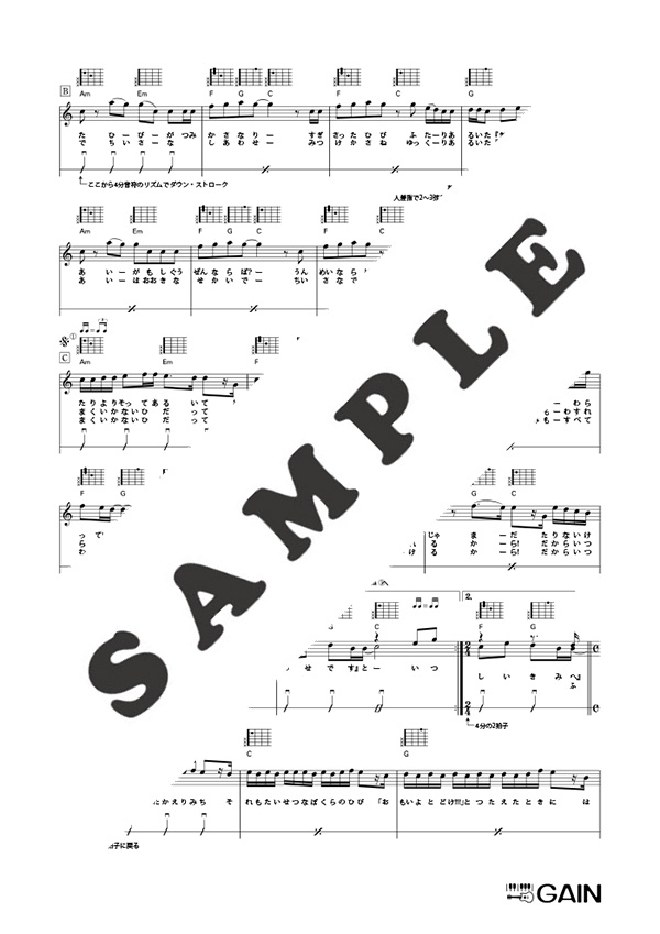 | ピック弾きアルペジオからストロークに変化するバッキングギターの楽譜を収載しています。このまま弾語りレパートリーとして完成させましょう。演奏+解説動画はYouTubeにて公開中です | ||