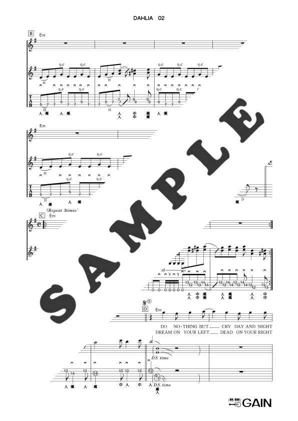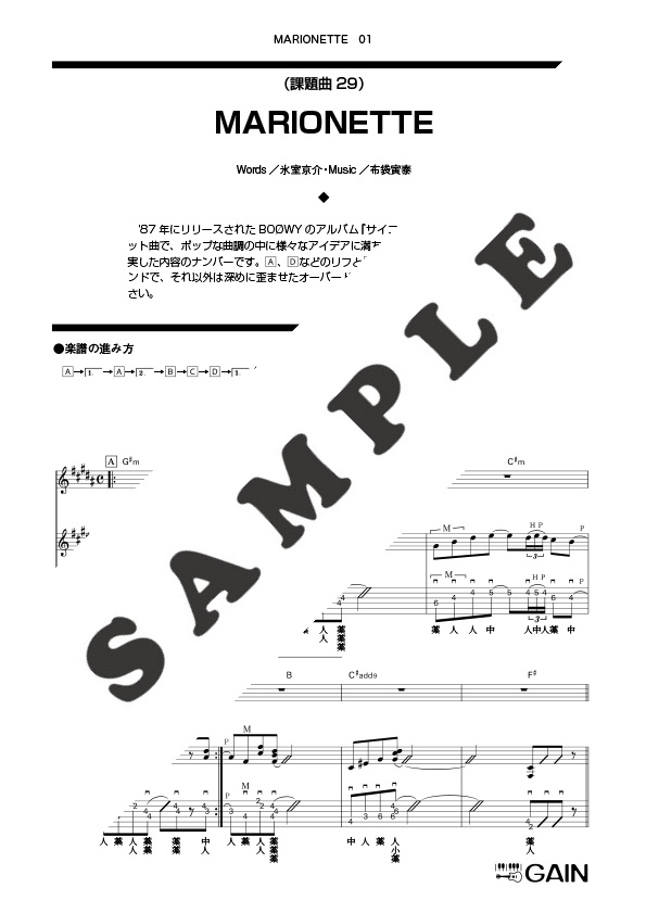 | ロックミックスを基にした楽譜です。布袋サウンドのギターを存分に味わいつつ演奏してください。特に間奏のリードギターソロは圧巻のプレイです。模範演奏+ギターカラオケ付き | ||