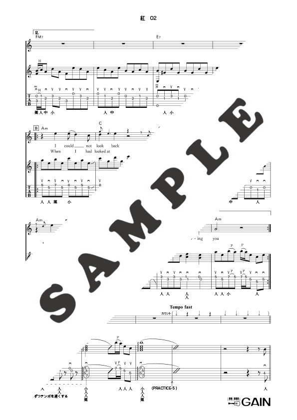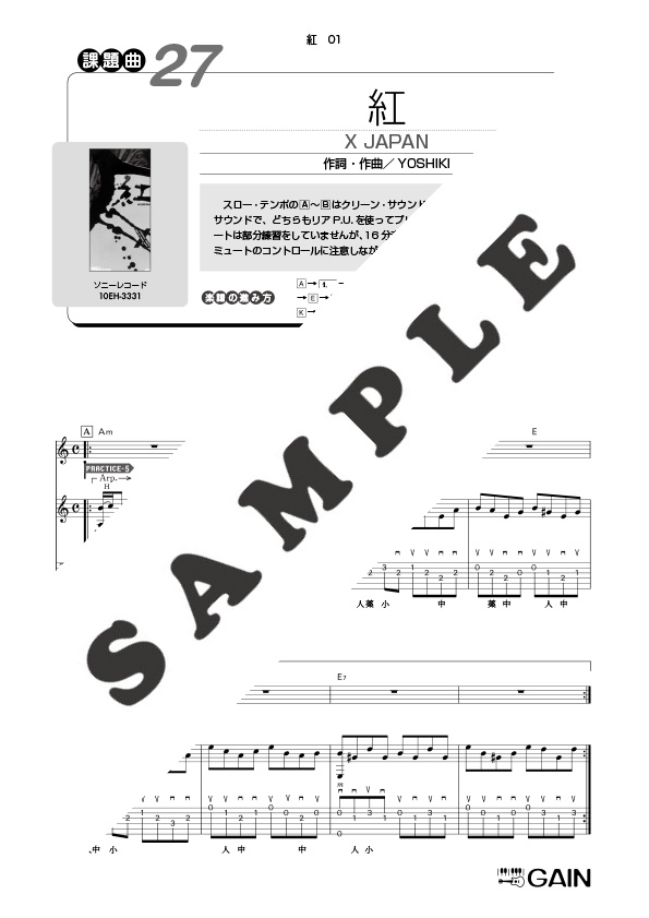 | ピックで弾くアルペジオが使われています。セッションでギターの音が埋もれてしまう場合の対策として必須のテクニック。演奏+解説動画はYouTubeにて公開中です | ||