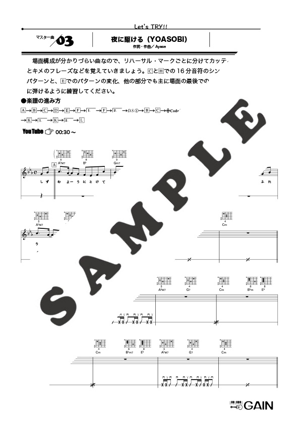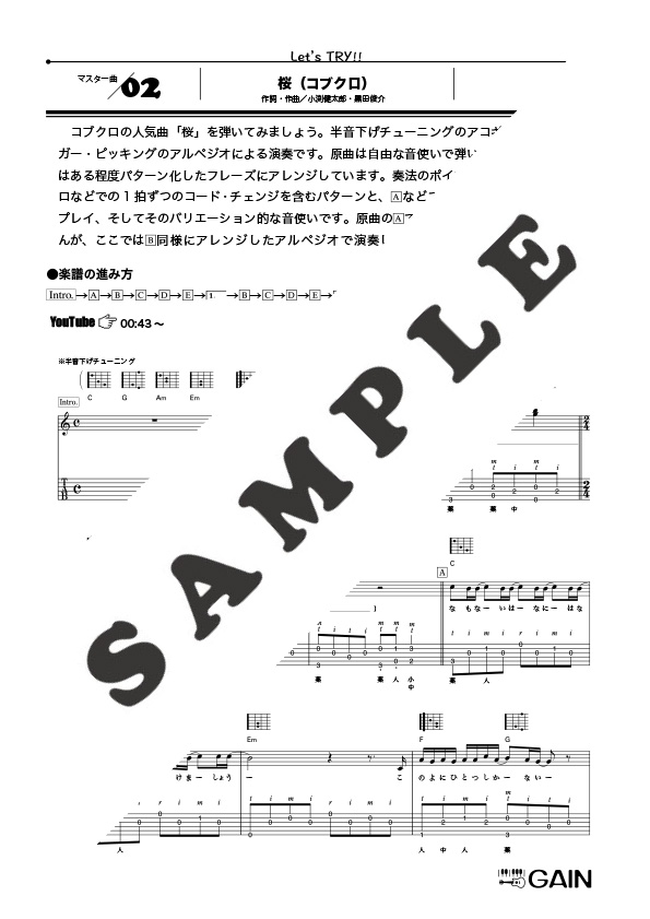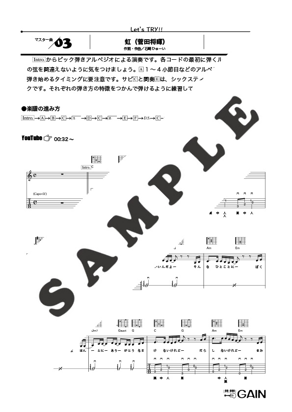 YouTube特典……楽譜のご購入時に、特典映像(模範演奏とギターカラオケ)が見られるリンクを発行します