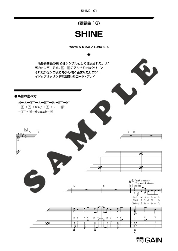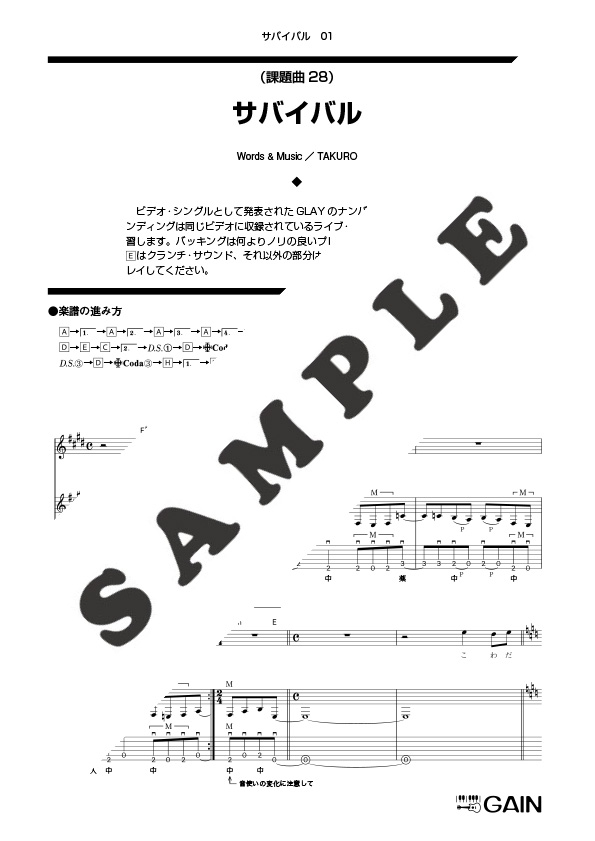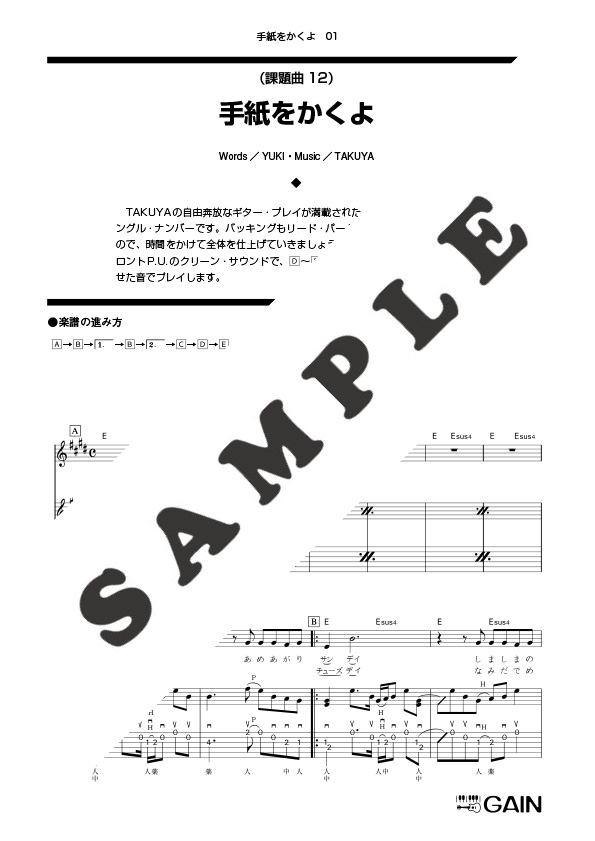 | シンプルな音使いであっても歌心を感じるギタープレイを楽譜にしました。いかにもバンドサウンドを楽しむための1曲です。模範演奏+ギターカラオケ付き | ||
